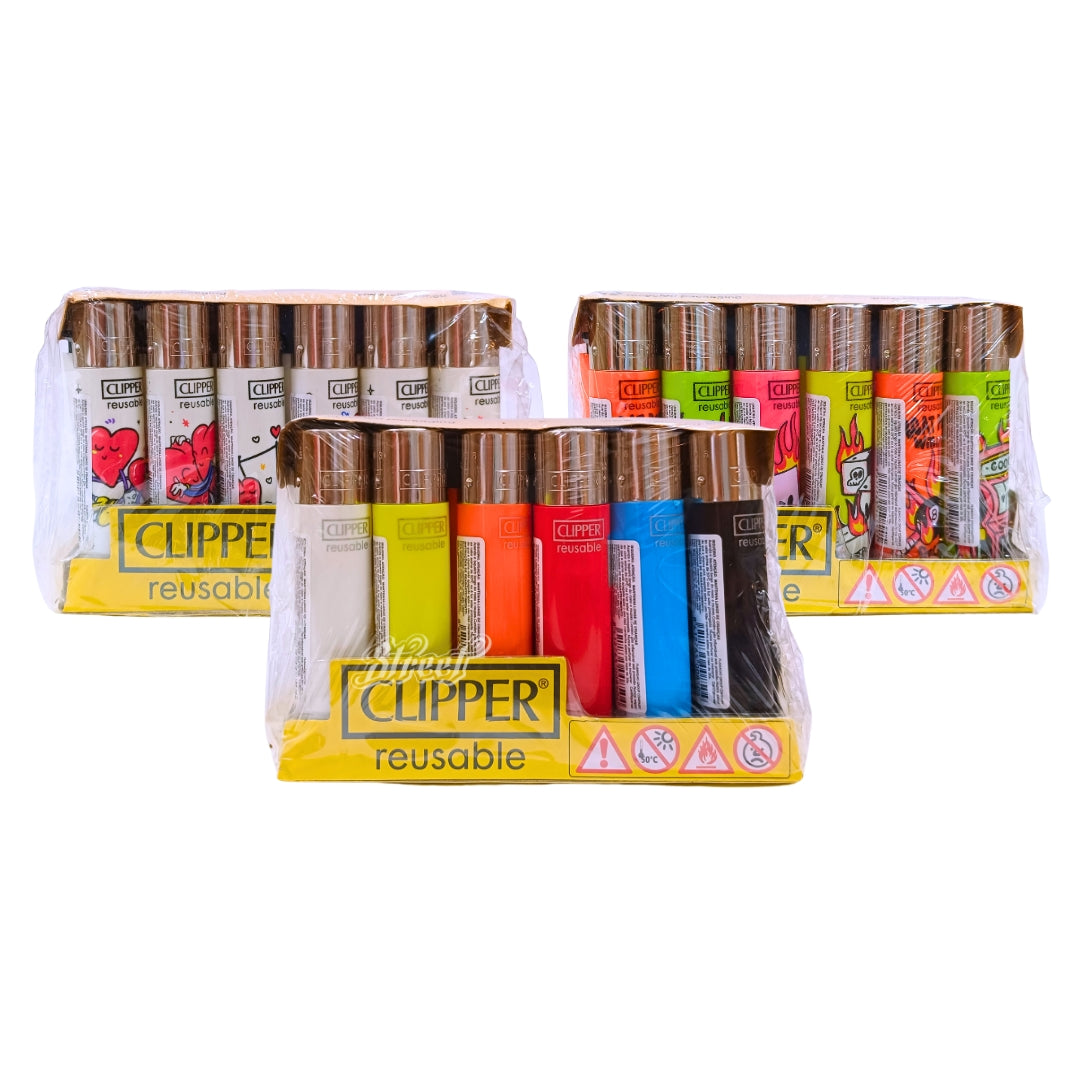 O clássico isqueiro Clipper, referência mundial em qualidade, agora disponível em display com 24 unidades.